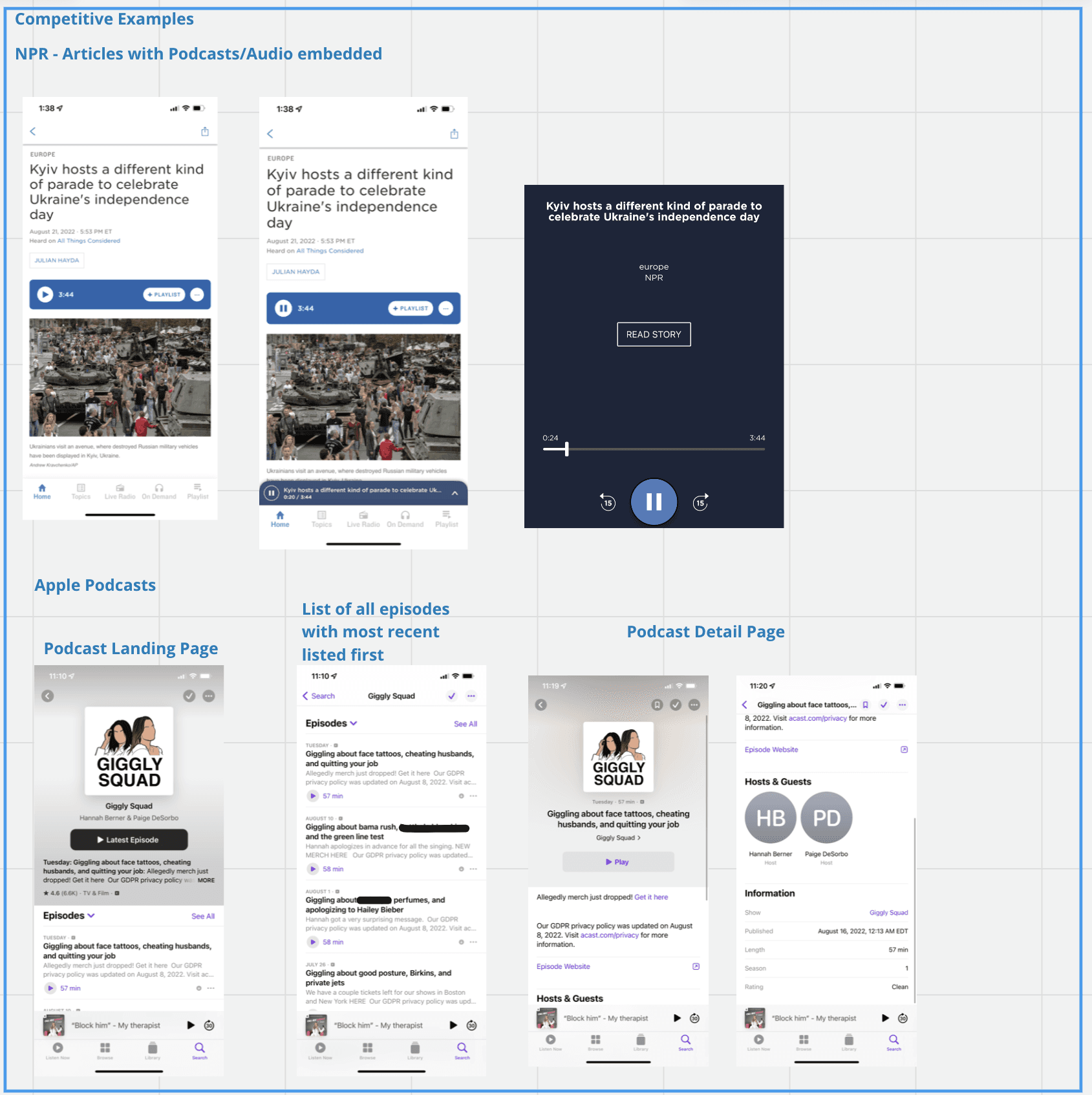 I researched existing podcast and audio players to identify:
